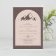This clear mountain country casual arch wedding invitation is perfect for a classic wedding. The design features an idyllic watercolor brown mountain.