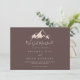 This clear mountain country elopement announcement has a beautiful modern design. The design features an idyllic watercolor beige mountain.