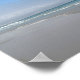 A clear, sandy beach with low level waves lapping at the sea shore - no people, not even a seagull, no obstructions - just a clear view.