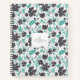 Clematis Flowers Teal Brown Pattern With Monogram Notebook