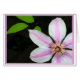 A brilliant clematis flower is shown off centre and ballanced by its leaves.