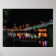 Cleveland Ohio cityscape, skyline at night with shimmering lights and reflection.