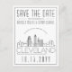 A unique wedding save-the-date postcard for a marriage taking place in the beautiful city of Cleveland, Ohio. This invitation features a stylised illustration of the city's unique skyline with its name underneath. This is followed by your wedding day information in a matching open lined style. On the reverse side of the post is your address information. All individual elements of the invite card are unlocked so feel free to change any details necessary such as font sizes, styles and more by using the customisation function. You can add a photo to the reverse side and add a black and white filter to it. Have fun being creative and making it your own!