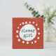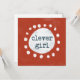 A bold red background features the phrase "clever girl" at the centre, enclosed by a ring of white dots surrounding a larger white oval. The playful and simplistic design emphasises the central message.