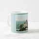 This coffee mug features a vintage photomechanical colour print postcard of The Cliff House from Sutro Heights, San Francisco, California, published by Detroit Publishing Company, c. 1893 - c. 1931. The background is shown in a sea green colour. Some clean up of the picture has been done to improve clarity but slight imperfections remain.