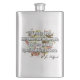 The product is a good size and came exactly as it was pictured. The lid is not attached to the flask, which could be dangerous on drunken nights... The print came out surprisingly well and looks very sharp. Would definitely recommend.