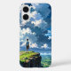 Dynamic anime phone case with a brave boy on a cliff under dramatic clouds. Optional text layer allows personalisation or removal.
