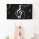 G Clef among white notes of music on black. The black background makes the bright white notes pop.