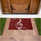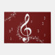 G Clef among notes of music on a deep red. The dark red background makes the bright white notes pop. White and maroon music design,