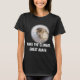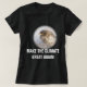 Photo of a wet unhappy sparrow. Text Make the climate great again on the front. Climate change awareness text on the back. Women's t-shirt. Fully customisable. You can change or delete the image and the text. For dark and black products.