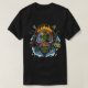 I give wanted to give this a 4 instead of a 5 because these Basic DARK T0shirts run unexpectedly SLIM or Narrow. Which is great if you do not have a potbelly, but I have a paunch. It isn't the shirt's fault that I've got a beer belly. The design and shirt itself is a quality cotton shirt. The color is more of a deep purple, but still a very pretty color. The Basic DARK T-shirts run a bit SLIMMER than the Basic Ts. The neck is a fraction narrower (or seems to be narrower) also. I'm a paunchy middle-aged woman and my neck is 12 inches (31cm) thick and the neckline fell about the same as in the photo of the man, and I had the desire to tug it a bit. So if you're a thick necked man or like loose shirts, be aware these are slimmer shirts. Once I get rid of my lockdown paunch it'll look great. The shirt washed well in cold water with no apparent bleeding. We don't have a dryer, so it hung dry. Did not shrink. Love the colors and the design. The design looks smaller on my shirt than it does on the model on-line. But still, it looks good on the shirt. The printing looks as it does on the model, just the size seems fractionally smaller. Washed garment in cold water, hung dry and design appeared unaffected.