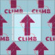 A typography design which has the word climb and an arrow painting up. Running rope weaves between the letters of the word climb. For anyone who loves sport or trad climbing.