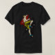 I give wanted to give this a 4 instead of a 5 because these Basic DARK T0shirts run unexpectedly SLIM or Narrow. Which is great if you do not have a potbelly, but I have a paunch. It isn't the shirt's fault that I've got a beer belly. The design and shirt itself is a quality cotton shirt. The color is more of a deep purple, but still a very pretty color. The Basic DARK T-shirts run a bit SLIMMER than the Basic Ts. The neck is a fraction narrower (or seems to be narrower) also. I'm a paunchy middle-aged woman and my neck is 12 inches (31cm) thick and the neckline fell about the same as in the photo of the man, and I had the desire to tug it a bit. So if you're a thick necked man or like loose shirts, be aware these are slimmer shirts. Once I get rid of my lockdown paunch it'll look great. The shirt washed well in cold water with no apparent bleeding. We don't have a dryer, so it hung dry. Did not shrink. Love the colors and the design. The design looks smaller on my shirt than it does on the model on-line. But still, it looks good on the shirt. The printing looks as it does on the model, just the size seems fractionally smaller. Washed garment in cold water, hung dry and design appeared unaffected.