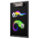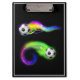 This clipboard is shown in black with a flaming soccer balls print.