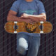 Cool retro wooden clockwork skateboard. For all friends of vintage style.