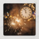 Party sparklers and a vintage clock indicate it's almost midnight for the New Year celebration.