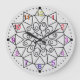 Mandala image of diamonds and ovals with central starburst. Numerals in rainbow colours. Places on a light grey background.