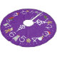A white vintage clock face on a purple background with fun Christmas holiday elements and snowflakes.