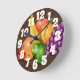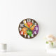 Clock with colourful fruit by Trish 2323, on brown textured background.