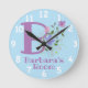 Child's bedroom clock. Kids bedroom clock. Design features Monogram & Name with Flowers either side in a water colour pastel style. Example name is Barbara. Change name as desired for anyone with a name beginning with B.
