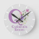 Design features Monogram & Name with Flowers either side in a water colour pastel style. Example name is Quiana. Change name as desired for anyone with a name beginning with Q. Child's bedroom clock.