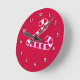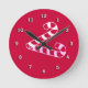 The clock face is red with white three dimensional numerals. In the center is a white striped candy cane with pink shadow.   ***Part of a coordinated set -  BKM1a.