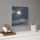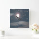 Full moon in a pre-dawn sky. Moonlight illuminates the wispy clouds against the dark sky. Roman numerals have a 3-d effect.