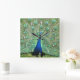 Peacock is all "eyes" on the time. Standing proud, the bird has bright green feathers accented with the royal blue centres and head and body feathers of blue. White numerals with drop shadow are at the edge.
