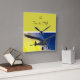 Photo of model airplane - original plans: designed by Barney Snyder and John Muir. Yellow and blue graphic striations create the "sky" - Text reads "Time to fly!" with the number 12 in the "12 o'clock high" position.