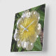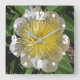 CLOCK/ WHITE PEONY WITH YELLOW CENTER. SQUARE WALL CLOCK
