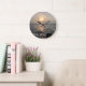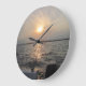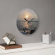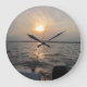 a round clock with a beautiful sunset over the Chesapeake Bay