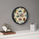 The size of the clock is dramatic and the abstract alcohol ink design is soothing and intricate at the same time. I chose the black frame that adds pop to the blue and gold design. The gold printing would be better in a slightly darker or larger font. I love it and I’m looking for just the right place in ny new apartment. I would recommend this clock for a personal gift or a present. I feel that the quality is excellent for the money! I’m a bit of a clock nut so I’m pretty particular about my purchases. The clock is larger in diameter than many if the clocks I have, so it stands out very well. I think a slightly darker printing color and a moderately larger size would best suit a professional decor or add more impact in a work place item.