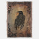 Raven on stone tile background. Clock gears all around border.