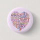 This clogging button features a word art collage in the shape of a heart. It lists common clogging steps as well as words like "clogger", "clog dance" and "clogging." The font style is retro. This design was meticulously made one word at a time, by a lover of clogging, of course! It's a unique button for the avid clogger.