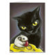 Gorgeous black cat and little mouse nibbling on a cranberry. From original oil pastel painting by Tanya Bond