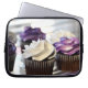 Close-up of cupcakes with selective focus on laptop sleeve