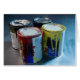Close-up of four paint cans