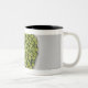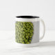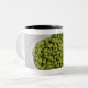 Close-up of green pebbles in a heart shape bowl Two-Tone coffee mug