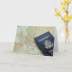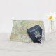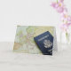 Close-up of passport lying on European map Card