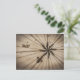 Close up of wind rose on antique map postcard