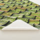 Close-up photo of green shingle roof sherpa blanket