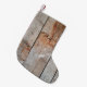 Close up photo of wooden panel small christmas stocking