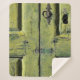 Closed brown wooden 2-panel door sherpa blanket