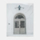CLOSED GREY WOODEN DOOR BELOW BLACK LIGHT SCONCE FLEECE BLANKET