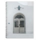 CLOSED GREY WOODEN DOOR BELOW BLACK LIGHT SCONCE NOTEBOOK