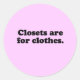 CLOSETS ARE FOR CLOTHES T-SHIRT CLASSIC ROUND STICKER