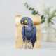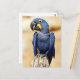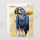 Portrait blue hyacinth macaw (Anodorhynchus hyacinthinus) perched on wood post and seen from front
