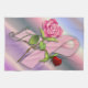 The closed rose symbolises closure and the hopelessness of the past and the pink rose symbolises new life and the hopefulness of the future.