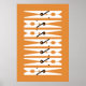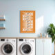 A fun way to brighten up the mundane task of doing laundry, this large poster print can be hung both vertically or horizontally and features a collection of simply illustrated clothes pins in a classic black and white on a burnt orange background. Personalize this art to suit your own color palette by using the customize further link to change the background color to one of your choice.