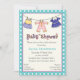 Clothesline baby girl shower personalised invitation, featuring cute pink, blue, yellow baby girl laundry on the clothesline, the text "baby shower" in a playful fonrt with hearts and an aqua blue, white polka dot border. An adorable, customisable design. Customise it and change border colour-turquoise. Some elements by Alice Smith.
